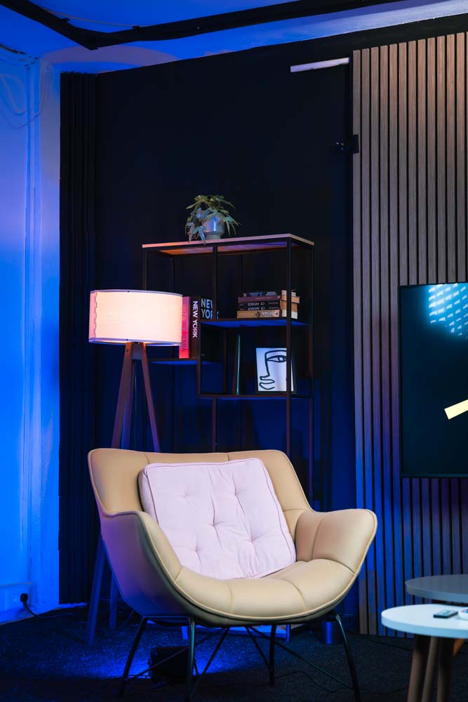 Από cozy podcast setups μέχρι καθαρά corporate κάδρα, εκπαιδευτικά video, interviews ή product videos, ο χώρος μπορεί να αλλάζει χαρακτήρα μέσα σε λίγα λεπτά.